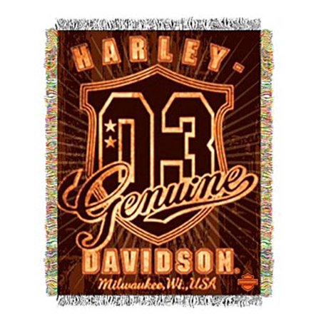 Size: 48" x 60".Harley-Davidson Tapestry BlanketGenuine 1903 Metallic GraphicSize: 48" x 60"Shades of brown and red